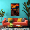 This expressive AI art homage to Edvard Munch's famous work "The Scream" captivates with its digital transformation and intense colors. The scene of fear, loneliness, and cosmic drama has been reinterpreted by artificial intelligence—perfect as eye-catching wall art for art connoisseurs, collectors, or lovers of symbolist aesthetics.