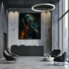 Solaris Glow depicts a semi-abstract portrait of a human figure, crisscrossed by glowing veins of orange and blue light. The form appears as if formed from energy—somewhere between flaming warmth and cold light, almost ethereal. This futuristic-mystical work of art is perfectly suited to modern spaces that should radiate depth, stillness, and power simultaneously.