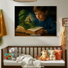 This AI-generated artwork depicts a boy engrossed in an open book—but from the pages, a large tree and a fairytale castle grow directly into his world. The image symbolizes the power of imagination, immersion in stories, and the magic of childlike wonder. The painterly style lends the scene a warm, enchanting depth. Ideal for fans of AI art, AI-generated art, fantasy artwork, fairytale motifs, midjourney style, and digital illustration for children and dreamers.