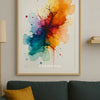 この表現力豊かな芸術作品は、中心から抽象的な色彩の爆発が伸び、まるで鮮やかな水彩画の樹木のように描かれています。細かく枝分かれした線は枝や葉脈を思わせ、青、赤、オレンジ、紫といった鮮やかな色彩に彩られています。流れるような形と飛沫が、動き、生命力、そして感情に満ちたエネルギッシュな構図を生み出しています。