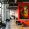 「Falling Down」は、大胆な筆致と赤、オレンジ、黄、黒のダイナミックな色彩グラデーションを通して、落下、動き、そして内なる葛藤という強烈な感情を表現した抽象画です。中央には、光と闇の渦に紛れ込んだかのような影の人物が浮かび上がります。鮮やかな色彩は、情熱、葛藤、そして変容を象徴しています。この作品は、その劇的なエネルギーと深い象徴性で鑑賞者を魅了し、モダンなリビングスペース、アートギャラリー、あるいは感情豊かなアート作品の解釈に最適です。