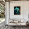 Polygonales Chamäleon in bunten Farben auf dunklem Hintergrund – geometrisch, modern, lebendig