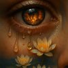 Ein intensives, emotionales KI-Kunstwerk, das Symbolik und Ästhetik auf höchstem Niveau verbindet. Im Zentrum steht ein menschliches Auge, in dessen Pupille sich eine brennende Stadt spiegelt. Aus dem Auge treten leuchtende Tränen hervor, die sich beim Fallen in strahlende Seerosen verwandeln. Dieses Bild spricht von Schmerz, Wandel und Hoffnung – es berührt und fasziniert zugleich. Ideal für Räume, die zum Nachdenken und Staunen einladen.