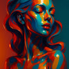 Chromaflow zeigt das farbstarke Porträt einer Frau in einer stilisierten, glänzenden Darstellung. Die Komposition besteht aus fließenden Farbflächen in Blau, Orange, Rot und Gelb, die sich über Gesicht und Körper legen wie flüssige Skulptur. Der Ausdruck der Frau ist ruhig und selbstbewusst, die Augen geschlossen – fast meditativ. Diese digitale Kunst vereint Ästhetik, Form und Bewegung zu einem harmonischen Gesamtbild.