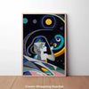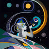 Der „Cosmic Whispering Guardian“ ist ein beeindruckendes KI-kreiertes Kunstwerk, das eine stilisierte Frauenfigur mit polygonaler Kopfbedeckung in den Mittelpunkt stellt. In einer mystischen Geste beugt sie sich einem abstrahierten Vogel- oder Planeten-Symbol zu, umgeben von leuchtenden Kreis- und Dreieckselementen vor tiefschwarzem Hintergrund. Feine Linienmuster und kontrastreiche Farbflächen verleihen diesem digitalen Meisterwerk eine futuristische, kosmische Atmosphäre – perfekt für moderne Interior-Prints, Online-Galerien oder NFT-Kollektionen bei kikunst.shop.