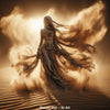 Desert Veil ist ein atmosphärisches Werk moderner Digital Art und Generative Art. Die Szene zeigt eine geheimnisvolle, in Stoff gehüllte Frau, die inmitten einer aufgewirbelten Sandwolke steht. Das Licht der untergehenden Sonne strahlt von hinten und erzeugt eine dramatische Silhouette. Die Kombination aus Abstract Art Elementen, realistischen Details und einem sanften 3D Art Effekt verleiht diesem Bild eine mystische und zugleich kraftvolle Ausstrahlung – perfekt für Liebhaber von Modern Art mit orientalischem Flair.