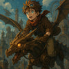 Dragonflight ist ein detailreiches, KI-generiertes Kunstwerk im Steampunk-Stil. Es zeigt einen abenteuerlustigen Jungen mit Fliegermütze und Schutzbrille, der auf einem mechanischen Drachen durch eine Stadt mit Luftschiffen, Türmen und Zahnrädern fliegt. Die Szene vermittelt Aufbruch, Fantasie und kindliche Entdeckerfreude – perfekt für Fans von Steampunk, Fantasy-Abenteuern und animierter Retro-Ästhetik.und – perfekt für Fans von Steampunk, Fantasy-Abenteuern und animierter Retro-Ästhetik.
