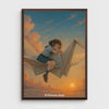 Dieses von künstlicher Intelligenz erschaffene Kunstwerk zeigt ein träumendes Mädchen, das auf einem riesigen Origami-Kranich durch einen farbenfrohen Abendhimmel fliegt. Die weichen Wolken, das warme Licht des Sonnenuntergangs und der friedliche Ausdruck des Kindes verleihen der Szene eine tiefe Ruhe und emotionale Tiefe. Die digitale Illustration verbindet Elemente aus Anime, Fantasie und Traumwelten zu einem modernen Kunstwerk im beliebten Midjourney-Stil.
