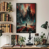 Echoes of Solitude – AI Art zeigt eine geheimnisvolle Silhouette, die in einer abstrakten Landschaft aus warmen Ocker-, Rot- und Grautönen versinkt. Die pastosen Farbflächen verschmelzen zu einer dichten, fast traumhaften Atmosphäre, in der Licht und Schatten aufeinander treffen. Der einsame Umriss einer Figur deutet auf Bewegung oder Erinnerung hin und verleiht dem Werk eine tiefe emotionale Resonanz – ein stiller Moment zwischen Verlust und Neubeginn.
