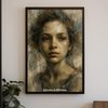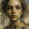 Echoes of Stillness – Ein ausdrucksstarkes, digital gemaltes Porträt einer jungen Frau, das mit subtilen, erdigen Farbnuancen und feinen Linien ein Gefühl von Ruhe und Nachdenklichkeit vermittelt. Die abstrahierten Pinselstriche und sanften Texturen schaffen Tiefe und verleihen dem Werk eine zeitlose, fast melancholische Atmosphäre.