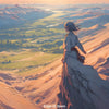 Edge of Dawn zeigt eine Frau auf einem felsigen Bergplateau, den Blick weit hinaus ins erwachende Land gerichtet. Der goldene Schein der Morgensonne taucht die Landschaft in Licht und Hoffnung. Dieses Werk ist eine visuelle Allegorie für Aufbruch, Selbstfindung und Freiheit – ein Augenblick zwischen Stille und Bewegung, zwischen Vergangenheit und dem, was kommen wird.