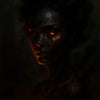 „Emberborn“ zeigt eine dunkle, glühende Gestalt – halb Mensch, halb aus Feuer und Lavagestein erschaffen. Rissige, schwarzverkohlte Haut zieht sich über das Gesicht und den Körper, aus deren Spalten feurige Glut leuchtet. Die intensiven Augen scheinen zu brennen, als würde in dieser Figur ein unkontrollierbares Elementarwesen wohnen. Das Bild wirkt archaisch, wütend und zugleich majestätisch. Eine visuelle Verkörperung von Urgewalt, Wut, Transformation und innerer Hitze. Ausdrucksstarke Kunst mit mythologischer Tiefe und starker Symbolik.