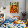 Der plakative Schriftzug „FALL IN LOVE!“ erscheint sowohl im oberen als auch unteren Teil des Bildes in markanter Vintage-Typografie und verleiht dem Motiv eine starke, emotionale Botschaft. Diese Illustration kombiniert nostalgischen Charme mit zeitloser Romantik und eignet sich hervorragend für Valentinstagskampagnen, Retro-Designprojekte, romantische Blogbeiträge, Social-Media-Inhalte oder als dekoratives Element in Liebes- oder Lifestyle-Kontexten.