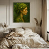 Ein zartes Frauenporträt zeigt eine junge Frau mit geschlossenen Augen – ihre Haut ist sonnengezeichnet, ihr Haar jedoch besteht aus weichem Moos, Farnen und Blüten. Sie scheint ganz eins mit der Natur zu sein, ruhig, friedlich, fast wie eine Göttin des Waldes. Dieses Werk strahlt Harmonie, Natürlichkeit und eine stille Verbindung zur Erde aus – perfekt für Natur- und Porträtliebhaber:innen.