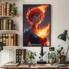 Inferna“ porträtiert eine geheimnisvolle Heldin, deren Kraft sich in Form lodernder Flammen manifestiert. Ihre feuerroten Haare scheinen eins mit dem Licht zu sein, das sich aus ihrer Brust nach außen ergießt – ein inneres Glühen, das sich in die Dunkelheit brennt. Die Komposition verbindet Anmut und Stärke auf eindrucksvolle Weise.Ihr Blick ist ruhig, aber bestimmt – als wüsste sie um eine Macht, die sie kontrolliert, aber auch beherrschen muss. Die Rüstung, glatt und modern, hebt sich metallisch glänzend vom weichen Licht der Flammen ab und lässt sie wie eine Figur aus einer fernen Zukunft oder einer mythischen Welt erscheinen. Die Szenerie ist dunkel und reduziert, sodass jede Bewegung des Feuers zur Erzählung wird.„Inferna“ steht für Transformation, innere Kraft und den Moment, in dem aus Kontrolle Leidenschaft wird – und aus Flamme Schicksal.