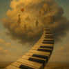Dieses KI-generierte Kunstwerk erzählt in surrealer Symbolsprache von Erinnerung, Nostalgie und der Kraft der Musik. Eine Treppe aus Klaviertasten führt vom trockenen Boden in den Himmel, wo sich eine Wolke voller Szenen aus dem Leben formt: Kinder, ein Haus, ein Liebespaar, ein Fahrradfahrer. Diese visuelle Komposition erinnert an eine verträumte Partitur der Vergangenheit – ein Ort, wo Musik und Emotionen eins werden. Ideal für Fans von KI Kunst, AI generated art, surrealer Kunst, nostalgischer digitaler Malerei und emotionaler Bildsprache im Midjourney Style.