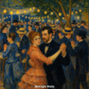AI-Kunst im Renoir-Stil mit tanzendem Paar auf einem Ball – impressionistisch, detailreich & lebendig