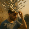 Dieses emotionale KI Kunstwerk zeigt einen Mann, der sich ein aufgeschlagenes Buch an die Stirn hält. Dutzende Seiten steigen aus dem Buch empor, als würden sie seine Gedanken, Erinnerungen oder inneren Welten symbolisieren. Die Szene ist in warmes, goldenes Licht getaucht und vermittelt Ruhe, Tiefe und Reflexion. Die Darstellung steht sinnbildlich für die Verbindung zwischen Wissen, Kreativität und persönlicher Transformation – meisterhaft umgesetzt in moderner, digitaler Kunst mit Hilfe künstlicher Intelligenz.