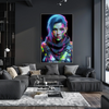 Neon Warrior zeigt eine futuristische Kriegerin in einer hochdetaillierten Sci-Fi-Rüstung. Leuchtende Neonfarben in Pink, Grün und Gelb ziehen sich wie pulsierende Energielinien über Gesicht und Panzerung. Das intensive Farbspiel hebt die ernste Mimik hervor und erzeugt eine dynamische, cyberpunk-inspirierte Atmosphäre. Ein Werk, das Digital Art, Generative Art und Abstract Art zu einem kraftvollen, modernen Motiv verbindet.