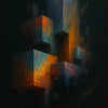 Dieses Kunstwerk zeigt leuchtende, abstrakte Pixelwürfel, die in einem dunklen, raumartigen Hintergrund zu schweben scheinen. Die Farbpalette mit intensiven Blautönen, feurigem Orange und Violett erzeugt eine kosmisch-geometrische Stimmung. Ideal für Liebhaber von digitaler Kunst, Abstraktion und futuristischen Motiven.