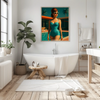 Poolside Muse fängt die elegante Ausstrahlung einer Frau im 50er-Jahre-Stil ein. Mit hochtoupiertem Haar, Cat-Eye-Sonnenbrille und einem funkelnden türkisfarbenen Badeanzug steht sie am Pool eines Mid-Century-Hauses mit Palmen im Hintergrund. Die Szene versprüht sommerlichen Glamour, Vintage-Charme und eine perfekte Farbkomposition. Dieses Werk verbindet nostalgische Schönheit mit moderner Digitalästhetik – zeitlos, stilvoll und ikonisch.