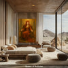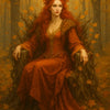 Inmitten eines goldenen Herbstwaldes sitzt eine Frau mit flammend rotem Haar auf einem Thron aus verästeltem Holz. Ihre Erscheinung wirkt königlich, ihre Kleidung und Krone aus Ahornblättern sind von der Natur selbst geformt. Dieses KI-Kunstwerk vereint Stärke und Stille, Weiblichkeit und Jahreszeitenmagie. Die Szene ist kraftvoll, friedlich und zugleich symbolisch für Wandel und Reife – ideal für Räume, die Erdung und Eleganz ausstrahlen sollen.