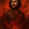 Revolutionary Flame – AI Art zeigt ein ikonisches Porträt einer historischen Persönlichkeit, die aus rot glühenden Flammen und Rauch hervorgeht. Die intensive Farbgebung in Rot- und Schwarztönen symbolisiert Leidenschaft, Widerstand und unerschütterliche Stärke. Dieses Werk verbindet Geschichte und digitale Kunst auf eindrucksvolle Weise.