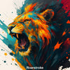 Roarstroke zeigt einen brüllenden Löwen inmitten einer lebendigen Explosion aus Farben. Der Kopf des Tieres ist in energischen Pinselstrichen aus Gelb, Orange, Türkis und Rot dargestellt – kraftvoll, wild und zugleich künstlerisch abstrahiert. Die aufbrechende Dynamik der Farben vermittelt Stärke, Mut und Entschlossenheit. Dieses Werk ist ein Ausdruck reiner Energie und animalischer Präsenz, eingefangen in einem modernen, expressiven Stil.