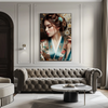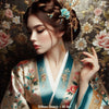 Silken Grace ist ein elegantes Werk moderner Digital Art und Generative Art. Es zeigt eine anmutige Frau in traditionellem Seidengewand, verziert mit kunstvollen Blumenmustern in sanften und leuchtenden Farbtönen. Ihr kunstvoll gestecktes Haar ist mit filigranen Schmuckelementen und blauen Blüten geschmückt. Die Kombination aus realistischer Darstellung, feinen Texturen und Abstract Art Elementen macht dieses Motiv zu einer perfekten Wahl für Liebhaber von Modern Art mit asiatischem Flair.