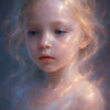 Ein zartes AI-generiertes Porträt eines kleinen Kindes in einer traumähnlichen Lichtatmosphäre. Die Darstellung wirkt fast ätherisch – mit leuchtenden Reflexionen und sanften Farbverläufen. Diese digitale AI Art kombiniert emotionale Tiefe mit feinster Lichtästhetik. Ideal als beruhigende Wandkunst für Wohnräume, Galerien oder Kinderzimmer.