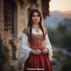 Timeless Beauty zeigt eine junge Frau in traditioneller Tracht, eingefangen im warmen Licht eines Sonnenuntergangs vor malerischer Kulisse. Ihr kunstvoll besticktes rotes Kleid und der historische Schmuck spiegeln die Schönheit und Würde vergangener Zeiten wider. Dieses Porträt steht für kulturelle Tiefe, handwerkliche Kunstfertigkeit und zeitlose Eleganz – ein ideales Motiv für Liebhaber traditioneller Ästhetik und kultureller Vielfalt.