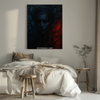 Veil of Shadows – AI Art zeigt das geheimnisvolle Gesicht einer Gestalt, das in tiefes Dunkelblau und feuriges Rot getaucht ist. Die abstrakten Formen und geschwungenen Linien umrahmen die Silhouette und erzeugen eine Atmosphäre von Mystik, Intensität und innerer Zerrissenheit. Dieses Werk verbindet dunkle Eleganz mit kraftvoller Symbolik – ein Statement moderner digitaler Kunst.